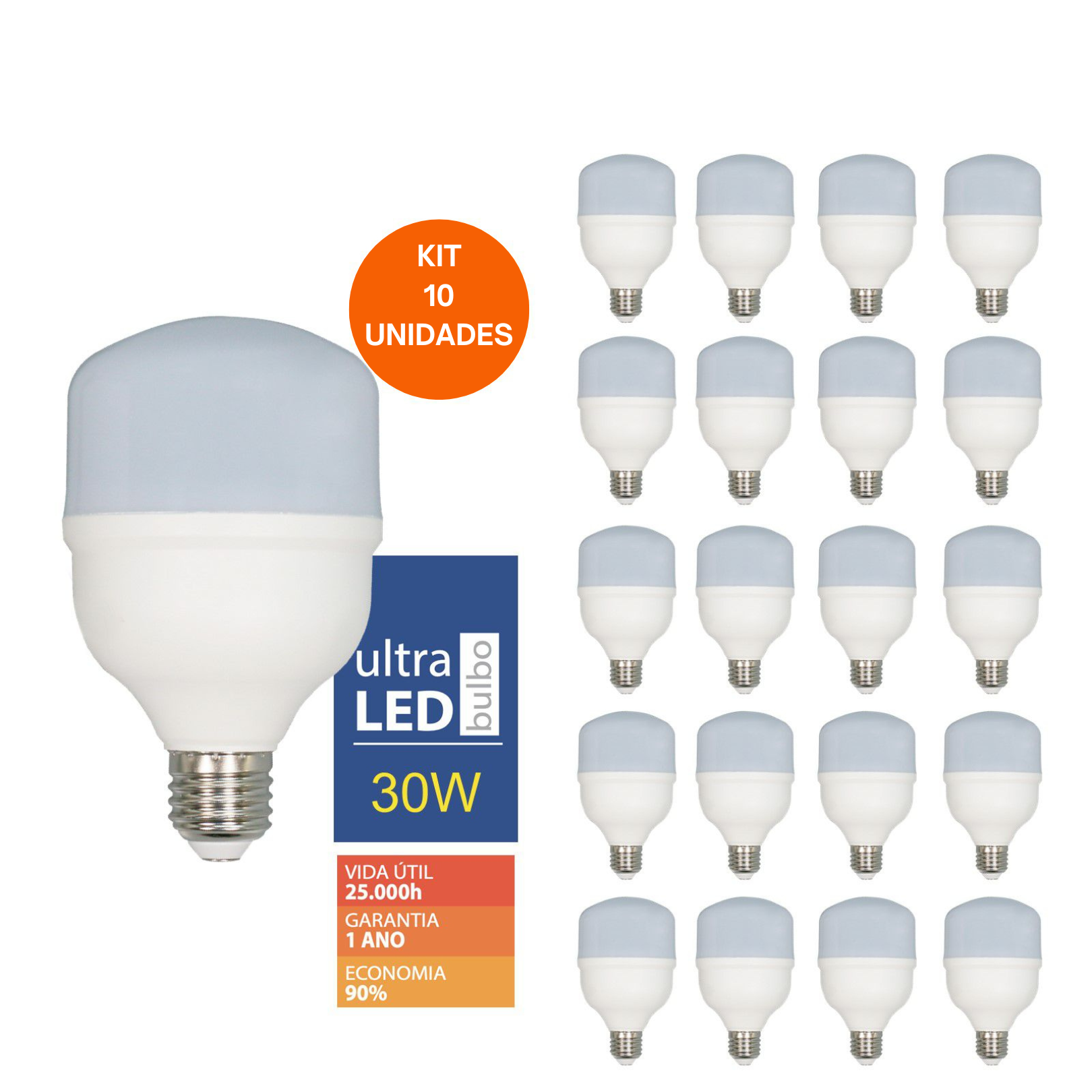 KIT com 10 Unidades SUPER BULBO LED 30W BIVOLT 6500K - BASE E27 - Durabilidade de 25.000 horas de vida.